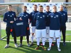 Christian Dewald, Mitarbeiter von Weinand.it, überbringt die schicke Ausrüstung an die Neuzugänge der Plaidter DJK.