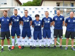von links: Trainer Andi Samson, Christian Dewald, Dominik Mürtz, Peter Sachse, Philipp Wolf, Co-Trainer Max Urmersbach, TW Trainer Rainer Schambach
