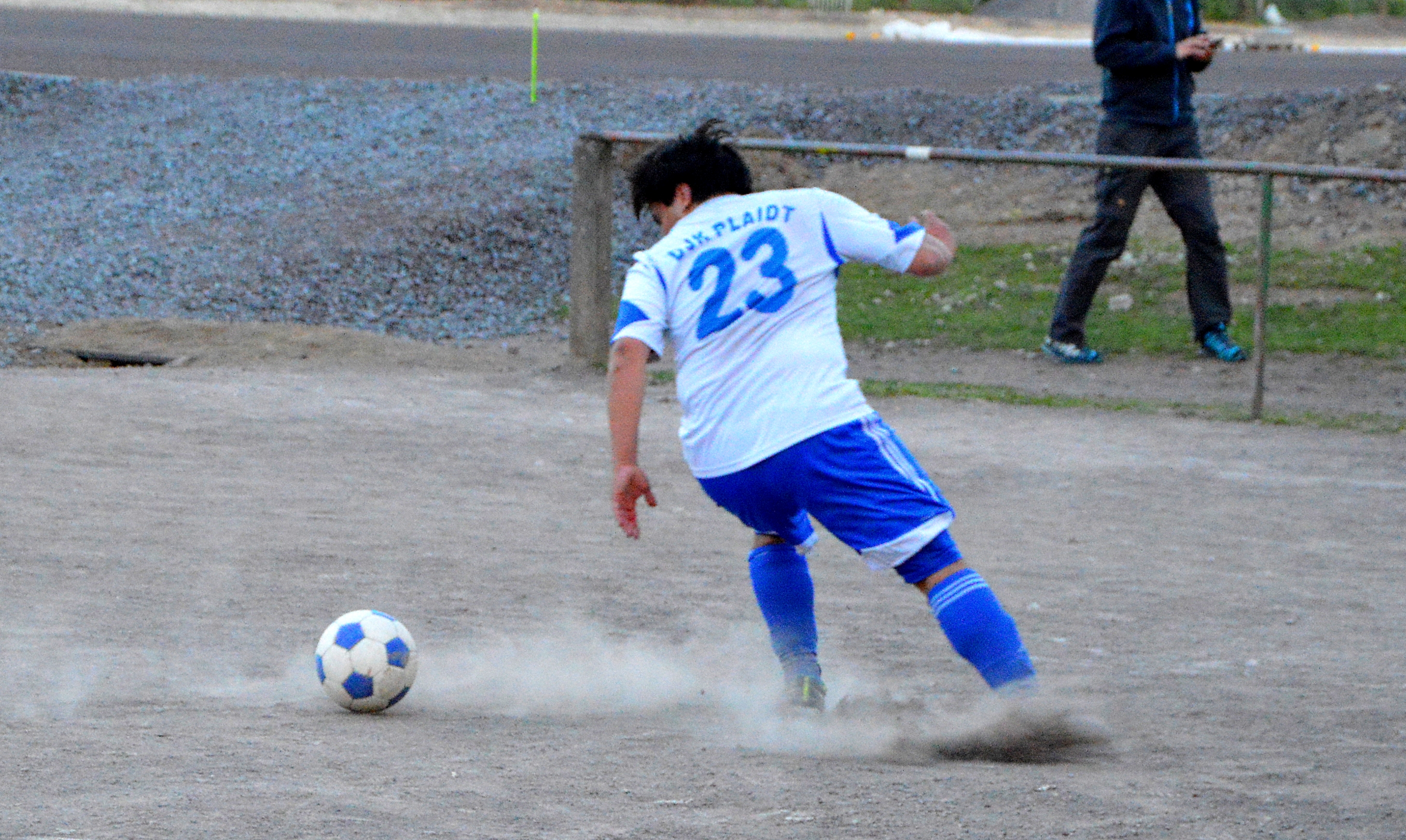 Im zweiten Teil unserer kleinen Serie blicken wir zurück auf die Saison 2004/2005. Die DJK Plaidt spielte damals nach fünfjähriger Abstinenz wieder ihre erste Saison in der Kreisliga B Mayen. Es war leider nur ein kurzes Gastspiel. Am Saisonende wurde das Team um Trainer Schamber abgeschlagen Tabellenletzter und musste wieder den Gang in die C-Klasse antreten. Das Foto stammt aus dieser Spielzeit und zeigt den Plaidter A-Jugendlichen Markus Umbscheiden (später FC Plaidt und SG Mendig) in der Partie gegen die erste Mannschaft des SC Concordia Saffig.