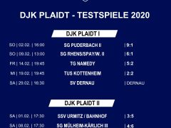 Langsam aber sicher biegt die Winter-Vorbereitung auf die Zielgerade ein. Bereits am übernächsten Wochenende stehen die ersten Pflicht-Nachholspiele im Jahre 2020 auf dem Programm. Die Plaidter Adler sind am Samstag, den 07.03.2020 jeweils auswärts gefordert. Für die erste Mannschaft um Coach Andi Samson geht es zur DJK Kruft/Kretz (Anstoß 19:30 Uhr). Die DJK-Zwote mit Sebi Seemann gastiert beim SV Kürrenberg (18:00 Uhr).