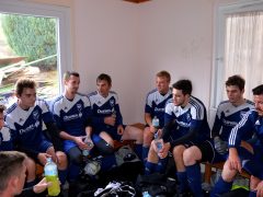 Dieses Foto ist am 14. Mai 2017 in der Plaidter Umkleidekabine entstanden. Die Partie der Kreisliga D Süd zwischen der DJK Plaidt III und dem TV Kruft endete mit 0:1 für die Gäste aus Kruft. Das Foto zeigt von links nach rechts: Pascal Moskopp, Pascal Wichowski und Fabian Wolinski.
