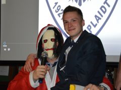 Ein lustiges Foto von der Weihnachtsfeier der DJK Plaidt Fußballabteilung am 10.12.2016 in der Schützenhallte zu Plaidt – Weihnachtsmann und Spieler Dominic Kohnz in trauter Zweisamkeit.