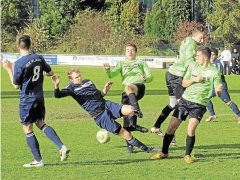 Sebastian Seemann (Bildmitte): „Aufstieg in Kruft, Spiel gegen TV Kruft, ich wurde beim 2:1 eingewechselt und habe das vorentscheidende 3:1 erzielt. Im selben Spiel hat Andreas S. aus P. zu einem der legendärsten Flugkopfbälle aller Zeiten angesetzt (lacht).“
