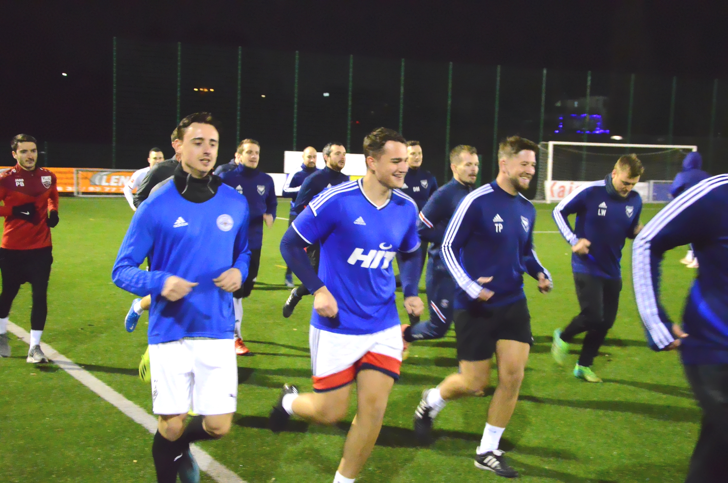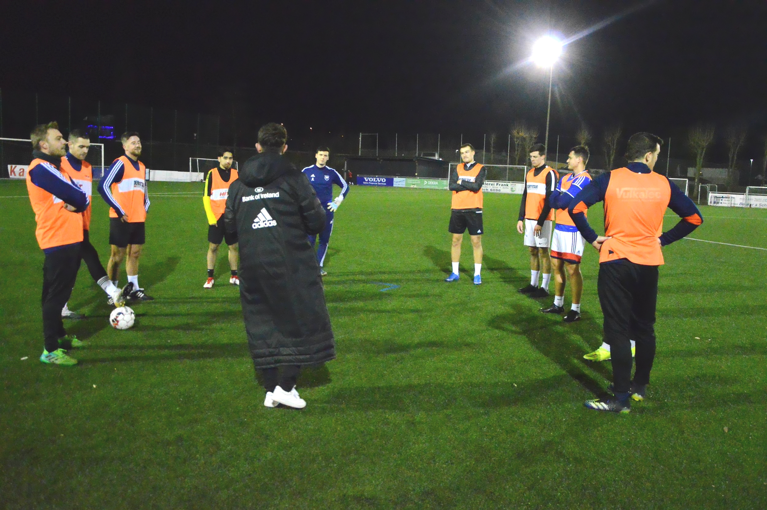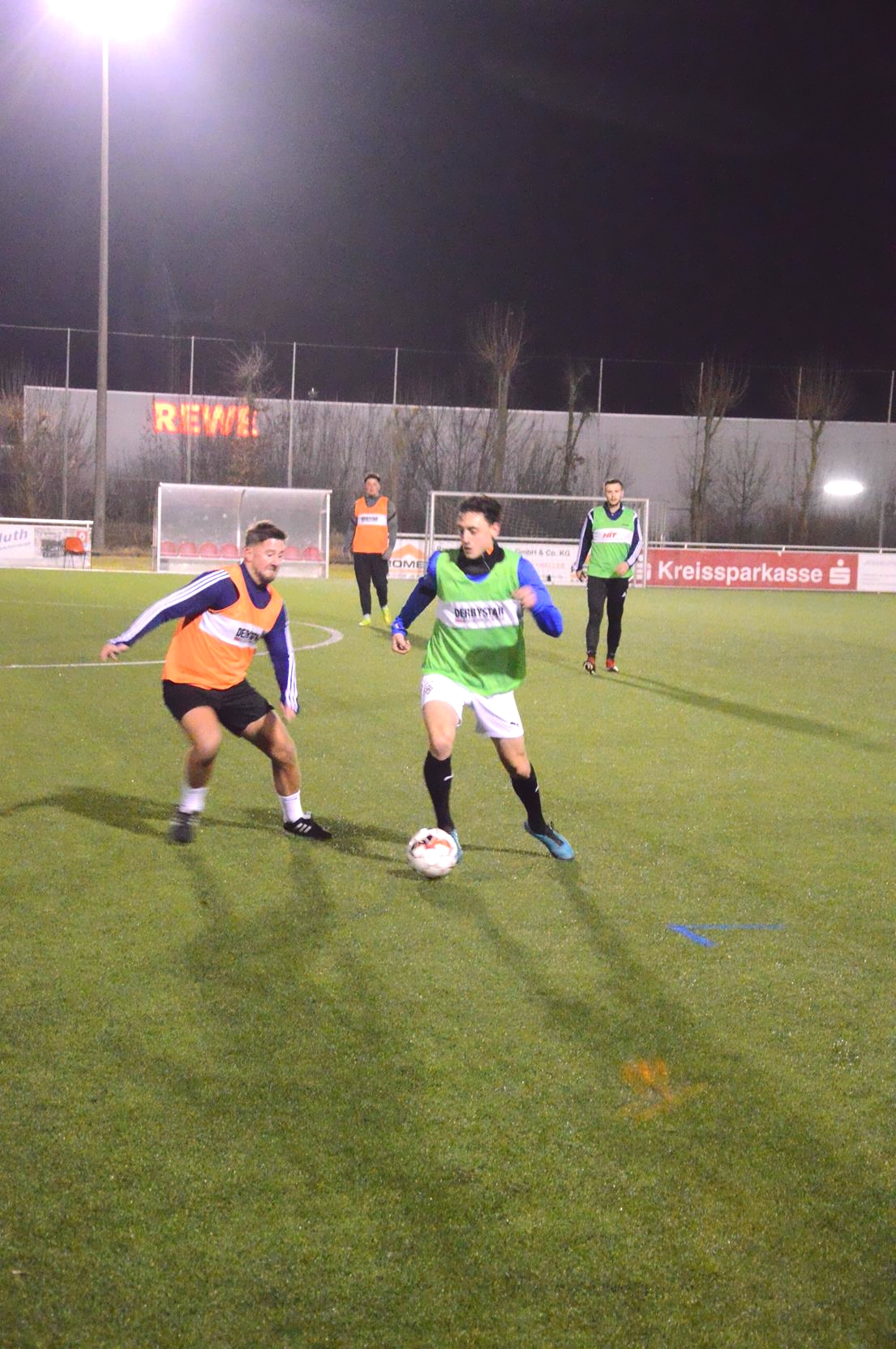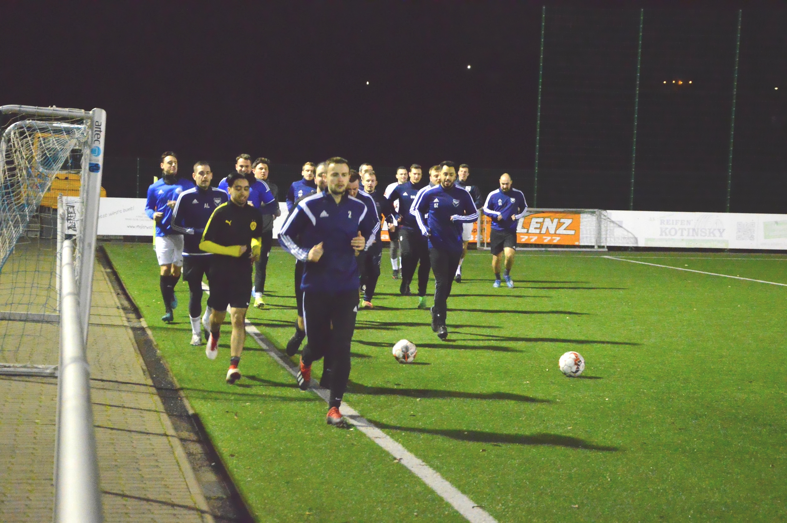 Nach einer kurzen Ansprache des Trainerteams drehten die Spieler zunächst ein paar Runden zum Aufwärmen und führten anschließend einige Passübungen durch, um nach der Winterpause wieder das Gefühl fürs runde Leder zu bekommen. Anschließend wurden zwei Teams mit jeweils 11 Spielern gebildet und ein Trainingsspiel über das komplette Spielfeld ausgetragen.