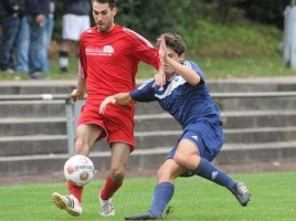 Vollen Einsatz von seinem Team erwartet Coach Lehmann gegen die SG Maifeld, so wie hier von Tim Büchel (rechts) gegen Martin Karduck (SG Weiler, links). Foto: Andreas Walz.
