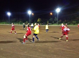 einem harten Zweikampf zwischen SCC-Abwehrmann Bastian Zäck und DJK-Stürmer Samuel, revanchierte sich Zäck an der Eckfahne mit einer Harakiri-Aktion, die eher dem Kampfsport als dem Fußball zuzuordnen wäre. Folge: Rudelbildung zwischen Spielern und Zuschauern sowie eine dunkelgelbe Karte für den Saffiger Verteidiger. Die DJK-Ordner hatten alle Hände voll zu tun die Ordnung neben dem Platz wieder herzustellen. Die Strafe folgte auf dem Fuß: Offenbar angestachelt von der Unsportlichkeit, sorgte der kleine Spanier aus dem Dorf Quartell bei Valencia, kurze Zeit später für die Vorentscheidung. Nach einem Pfostenschuss von Sachse landete die Kugel beim Torschützen, der zuerst seinen Gegenspieler ins leere springen ließ, um dann das Spielgerät aus fünf Metern zum 3:1 in die Maschen zu hämmern (76). Riesenjubel beim Plaidter Anhang, betretene Mienen bei den Gästen. Doch damit nicht genug, der Plaidter Matchwinner setzte sogar noch einen drauf. „El Matador“ Samuel erkämpfte sich den Ball im Mittelfeld, sah das der Saffiger Schlussmann etwas zu weit vor seinem Kasten stand und donnerte das Spielgerät, aus gut 30 Metern, in den linken Winkel (79.). Traumtor, 4:1, die Entscheidung!