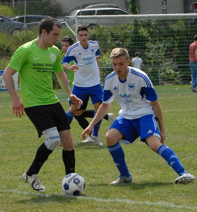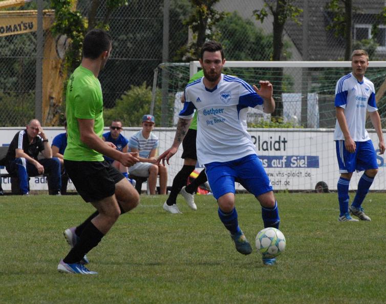 Kurz vor der Pause, als alle mit einem 0:1-Pausenstand rechneten, sahen die Fans doch noch zwei weitere Treffer. Zuerst netzte Adler-Taktgeber Peter Sachse zum 1:1-Ausgleich ein (44.), dann traf Armin Leber für die Gäste zur erneuten Führung (1:2 – 45.). „Wir haben im ersten Durchgang die Flügel nicht in den Griff bekommen und viel zu selten gedoppelt“, stellte Plaidts Co-Trainer Markus Umbscheiden fest. Nach dem Seitenwechsel erhöhte wieder Kohlhaas, auf Zuspiel von Sturmpartner Leber, auf 1:3 (53.).