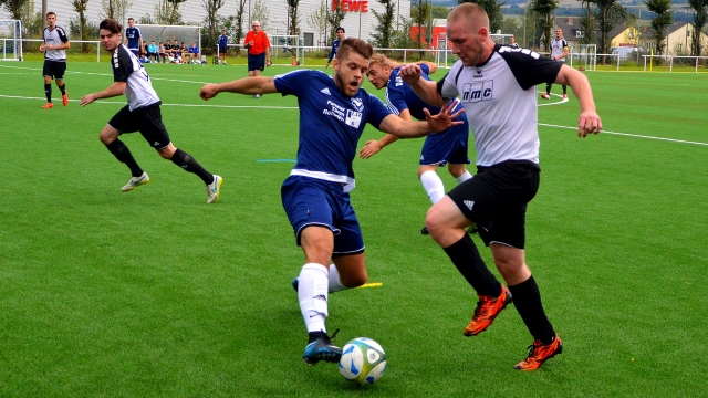 Die Anfangsphase begann abwartend. Beide Teams standen sicher im eigenen Devensivverbund. So waren es auch Distanzschüsse von Schmitt, Schander und Ersatzkapitän Sachse, die das erste Mal für Torgefährlichkeit sorgten. Auf der Gegenseite konnte sich DJK-Goalie Andreas Kuhlen mit einer Klasseparade auszeichnen. In der 24. Spielminute nahm die Partie dann fahrt auf und es kam zum Kuriosum des Spiels. Ein Gästeangreifer prallte nach einer Flanke im Strafraum mit Torwart Kuhlen zusammen und blieb mit schmerzverzerrtem Gesicht liegen. Die Plaidter Adler gingen davon aus, dass der Ball wie üblich ins Seitenaus gespielt wird. Pustekuchen. Die Ettringer spielten munter weiter und kamen nach zwei Nachschüssen so zur moralisch fragwürdigen 0:1-Führung. In der Folge rannte die DJK mit einer ordentlichen Portion Wut im Bauch in Richtung des Ettringer Tors an. Und dies sollte kurz darauf auch belohnt werden. Nur zwei Zeigerumdrehungen später schlug Plaidts erfahrenster Feldspieler Daniel Raasch einen Freistoß aus dem Halbfeld mustergültig auf den Kopf von Christian Dewald. Der Mittelfeld-Abräumer hatte anschließend keine große Mühe den Ball aus 5 Metern über die Linie zu wuchten (26.). Und jetzt war richtig Feuer im Spiel. Eine aggressive Zweikampfführung prägte das Restbild der ersten Halbzeit. Ohne weitere nennenswerte Torchancen ging es in die Halbzeitpause.