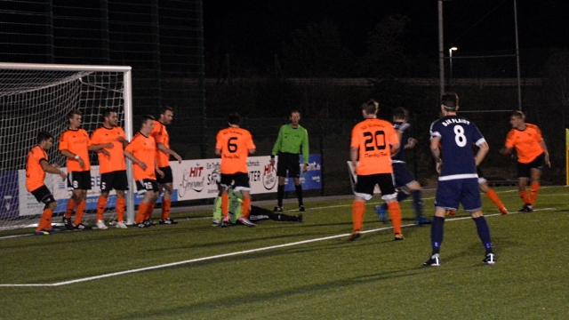 Beim Halbzeitstand von 3:0 ging es dann zum Pausentee und die Adler-Anhänger stellten sich die Frage, ob die Spieler aus der Partie vom vergangenen Sonntag gelernt hatten. Die Antwort vorweg: Ja, haben sie! Denn Plaidt versuchte keinesfalls den komfortablen Vorsprung im zweiten Abschnitt nur noch zu verwalten, sondern drängte auf den eigenen vierten Treffer. So scheiterte Simon Schmitt mit seinem Freistoß an der 8-Mann-Mauer die sich auf der Torlinie der SG-Zwoten platzierte (Foto oben), nachdem der Schlussmann die Kugel nach einem Rückpass in die Hand nahm. Auch die weiteren Chancen konnten nicht genutzt werden. So hätte Schellberg durchaus erneut auf Elfmeter entscheiden können, als Tobias Fahl von SG-Torwart Tim Schumacher an der Strafraumgrenze über den Haufen gerannt wurde. Den Kopfball von DJK-Abräumer Christian Dewald aus kurzer Distanz hielt Schumacher allerdings glänzend. Und auch die Gäste durften einmal im Spiel jubeln, wenn auch nur kurz, denn das Tor von Angreifer Daniel Bianco wurde wegen einer hauchdünnen Abseitsentscheidung aberkannt. In den letzten Spielminuten stellten sich die Jungs vom Pommerhof dann hinten rein und ließen ihrem gut aufgelegten Keeper Andreas Kuhlen nochmal die Chance sich auszuzeichnen. Am Ende blieb es allerdings beim verdienten 3:0-Heimsieg für die Plaidter Adler, die damit das erste Mal in dieser Saison „zu Null“ gespielt haben.