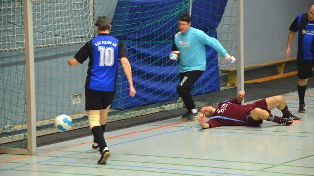 Plaidt. Die Hinrunde des Hallenfußballturniers der Verbandsgemeinde Pellenz in Plaidt ist abgeschlossen. Nach 15 Spielen hat sich das erwartete Führungstrio an der Spitze festgesetzt. Bezirksligist FC Alemannia Plaidt grüßt mit zwölf Punkten von der Tabellenspitze, dahinter lauern die A-Ligisten DJK Kruft/Kretz (11) und SG Eich/Nickenich/Kell (10). Der Start ins Turnier ging für das Bezirksligist Plaidt (schwarz-grüne Trikots) jedoch komplett in die Hose, mit 1:3 unterlag die Mannschaft von Trainer Volker Schambach der DJK Kruft/Kretz (grüne Trikots). Danach gab es für den favorisierten Bezirksligisten ausschließlich Siege, darunter ein 7:1-Kantersieg gegen die Kombinierten aus Eich, Nickenich und Kell. Die DJK Kruft/Kretz musste in der Hinrunde zwar keine Niederlage einstecken, allerdings könnte sich im Nachhinein das 0:0 gegen B-Ligist DJK Plaidt als besonders schmerzhaft erweisen. Mit zehn Zählern hat die SG Eich/Nickenich/Kell noch alle Chancen auf den Gesamtsieg. Vom 1:7 gegen Plaidt abgesehen, spielte die Mannschaft von Jürgen Krayer eine gute Hinrunde. Auf dem vierten Rang liegt zurzeit B-Ligist DJK Plaidt mit sieben Zählern, gefolgt von Klassenkonkurrent SC Concordia Saffig (3), der aber nur das Spiel gegen den punktlosen Tabellenletzten TV Kruft aus der Kreisliga D mit 2:1 für sich entscheiden konnte. Die Rückrunde des Seniorenturniers in der Realschule plus in Plaidt beginnt am Mittwoch um 18 Uhr. jam/rz
