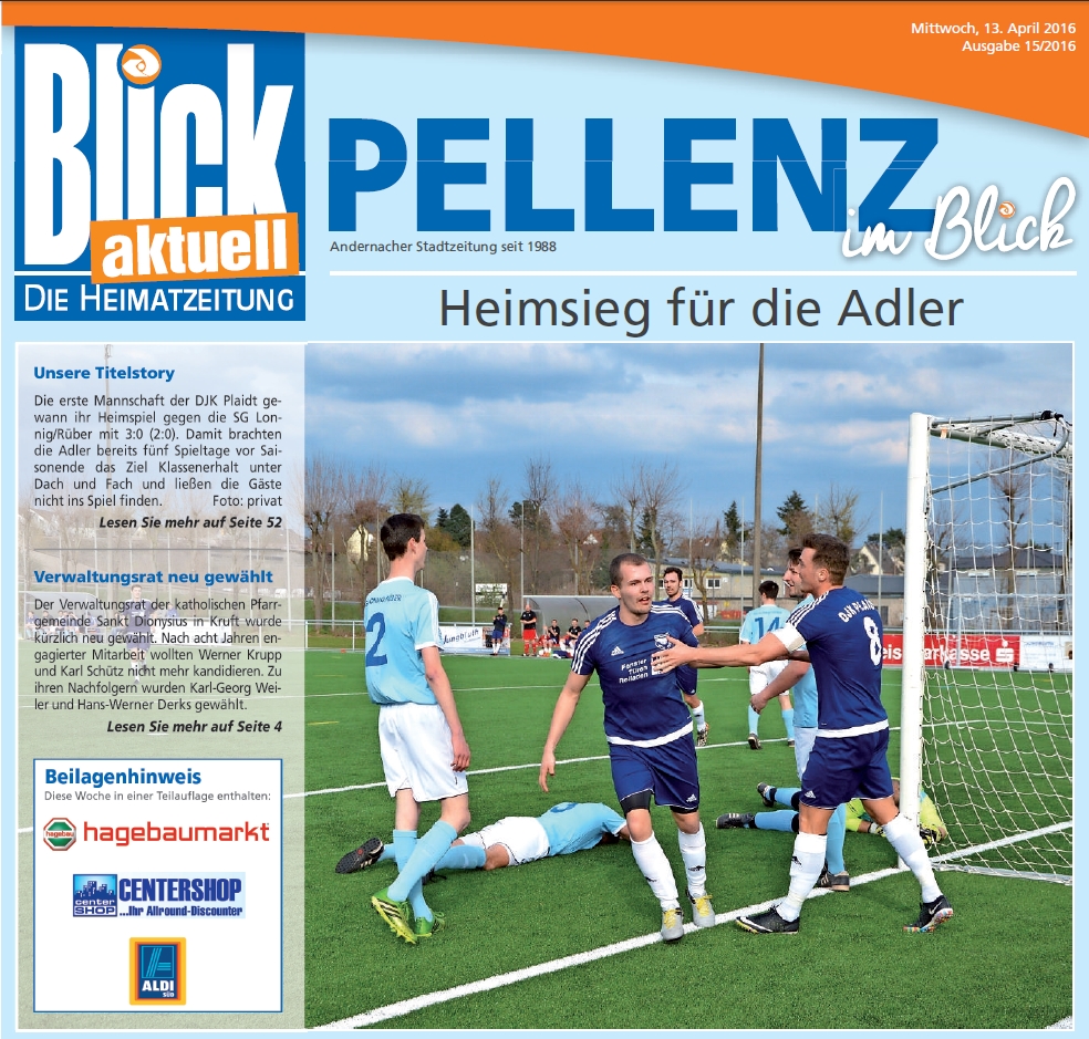 Plaidt. Die erste Fußballmannschaft der DJK Plaidt hat das B-Klassen-Heimspiel gegen die SG Lonnig/Rüber mit 3:0 (2:0) gewonnen. Damit haben die Plaidter Adler bereits fünf Spieltage für Saisonende das ausgegebene Saisonziel Klassenerhalt unter Dach und Fach gebracht. Dementsprechend zufrieden äußerte sich Fußball-Abteilungsleiter Holger Krämer: „Das Team hat über die komplette Saison super gearbeitet und sich diesen Erfolg redlich verdient. Entscheidend waren aus meiner Sicht die drei Siege vor der Winterpause. Damit konnten wir frühzeitig ein großes Polster nach unten herstellen.“