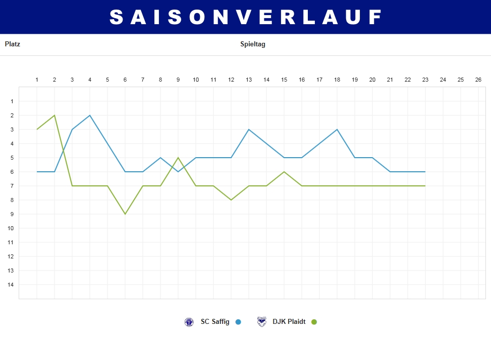 STATISTIK: In der Kreisliga B Mayen trafen beide Teams in den vergangenen drei Spielzeiten sechs Mal aufeinander. Die Bilanz ist dabei völlig ausgeglichen: 2 Siege für Saffig (in Saffig), 2 Siege für Plaidt (in Plaidt) und 2 Unentschieden (1x in Plaidt und 1x in Saffig). Torverhältnis 8:8.