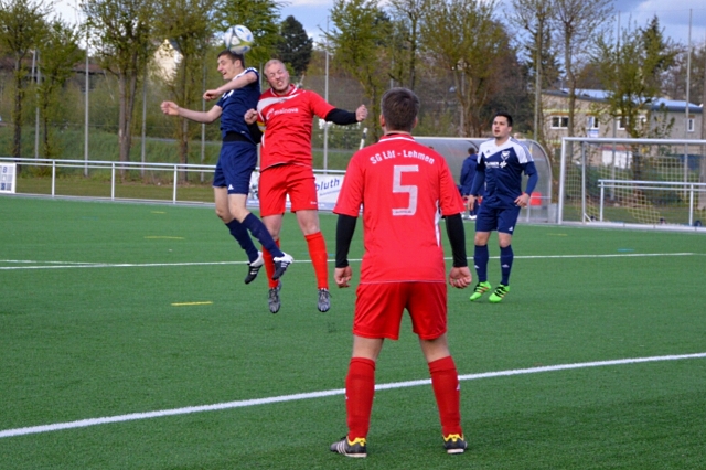 Marlon Schumacher (links) im Kopfballduell mit SG-Spielführer Sebastian Steffens