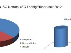 Vor der Saison hat sich die SG Nettetal neu gegründet. Sie besteht aus den drei Vereinen SV Ochtendung, TuS Lonnig und SV Rüber. Trainer ist Marvin Neideck, der schon seit einiger Zeit die SG Lonnig/Rüber betreut. In den vergangenen vier Spielzeiten trafen beide Teams achtmal aufeinander. Dabei spricht die Statistik leicht für die Plaidter (siehe Grafik). Die Begegnungen waren stets von großem Einsatz und Kampf geprägt, auf und neben dem Spielfeld.